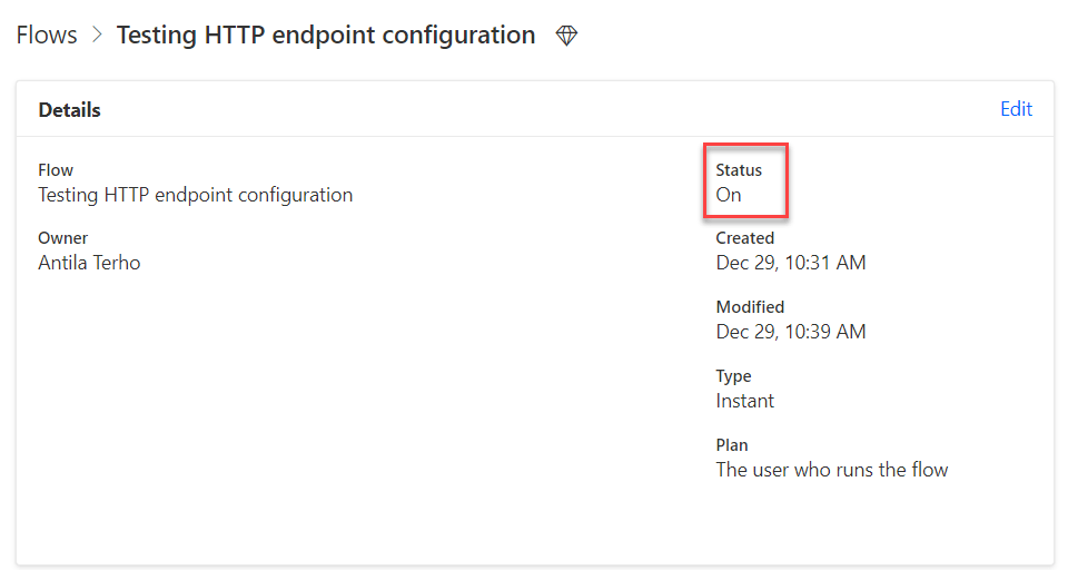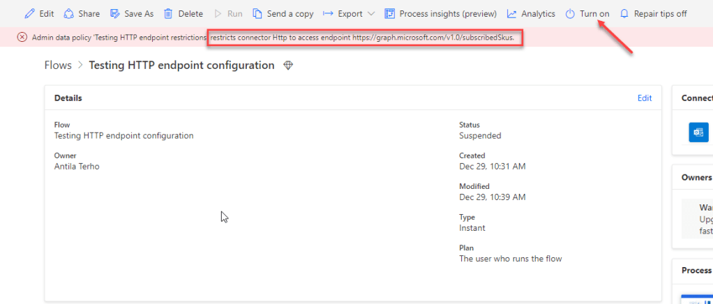 And, as expected, the flow was automatically turned of with an appropriate error message.