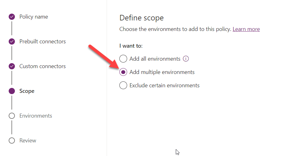 Next I am creating a new DLP policy and applying to my development environment.
