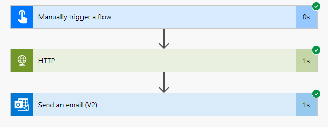Now that the both connectors I am using belong to the same category (Business), the flow should be able to run without problems. And it does.